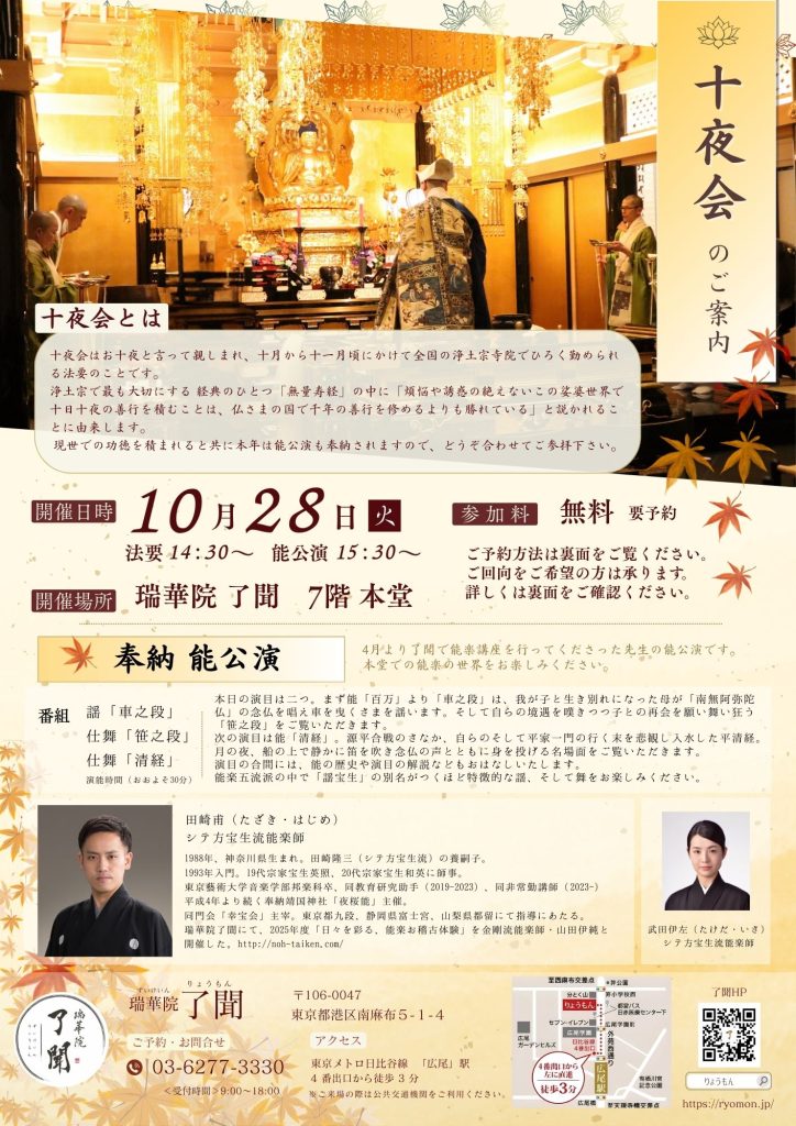 十夜会・奉納 能公演を執り行いますのでお知らせいたします。